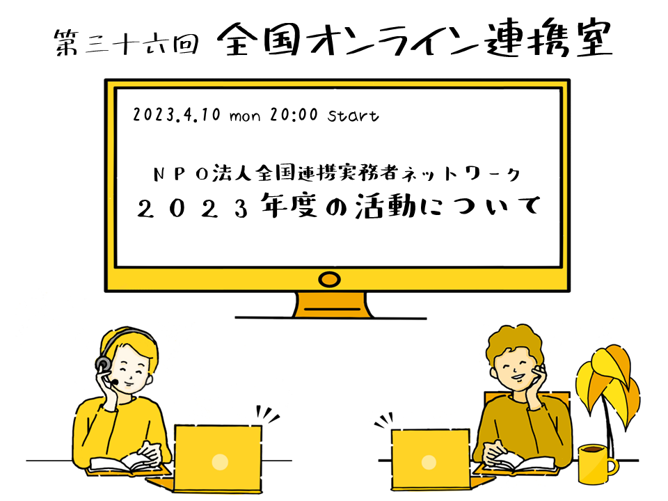 来たる4月10日(月)20時より、本年度最初の当法人の企画となる「第36回全国オンライン連携室」を開催いたします。