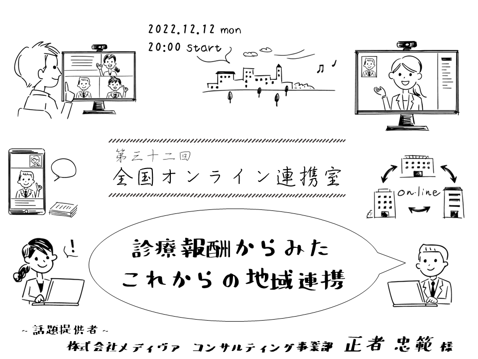 来たる12月12日(月)20時より、「第32回全国オンライン連携室」を開催いたします。