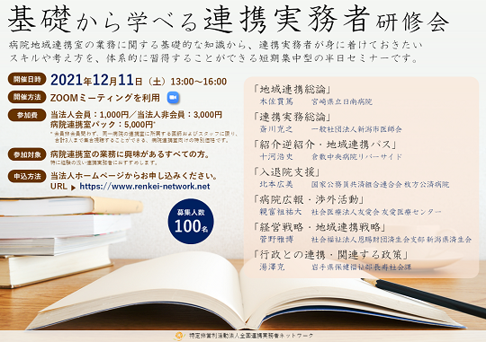 来たる12月11日(土)13時より、「基礎から学べる連携実務者研修会」を開催いたします。