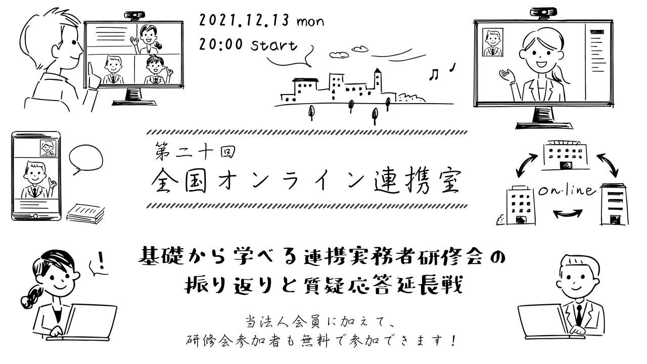 来たる12月13日(月)20時より、「第20回全国オンライン連携室」を開催いたします。